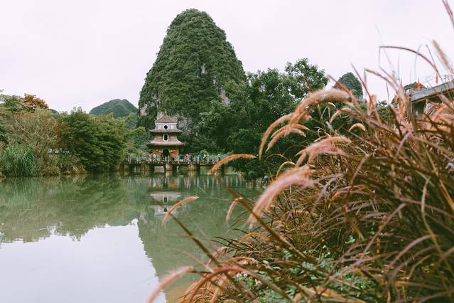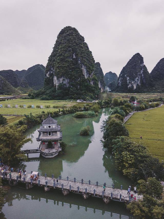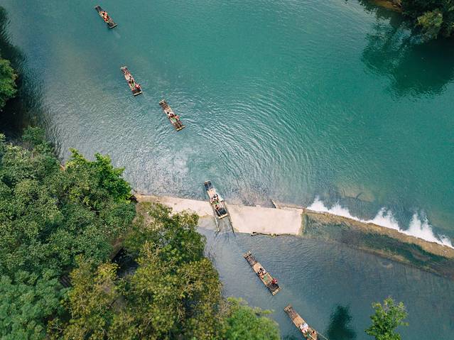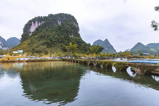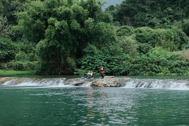 竹筏就在下面这条河上,电动的,并不推荐坐。广西可以坐竹筏的景点太多了,不如找个更美的地方。