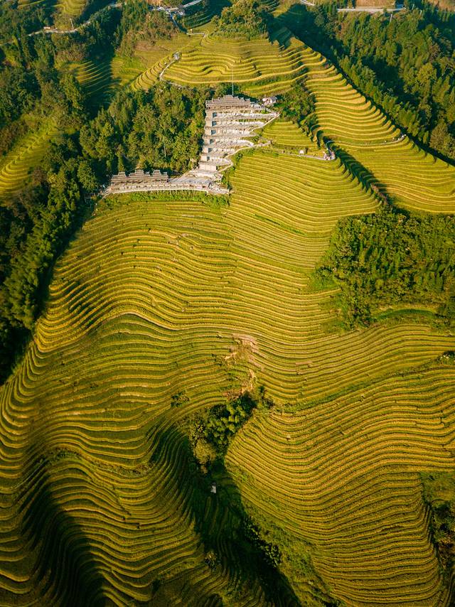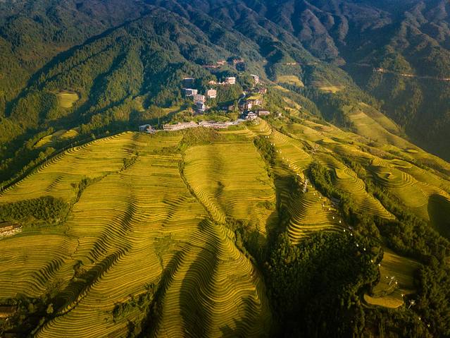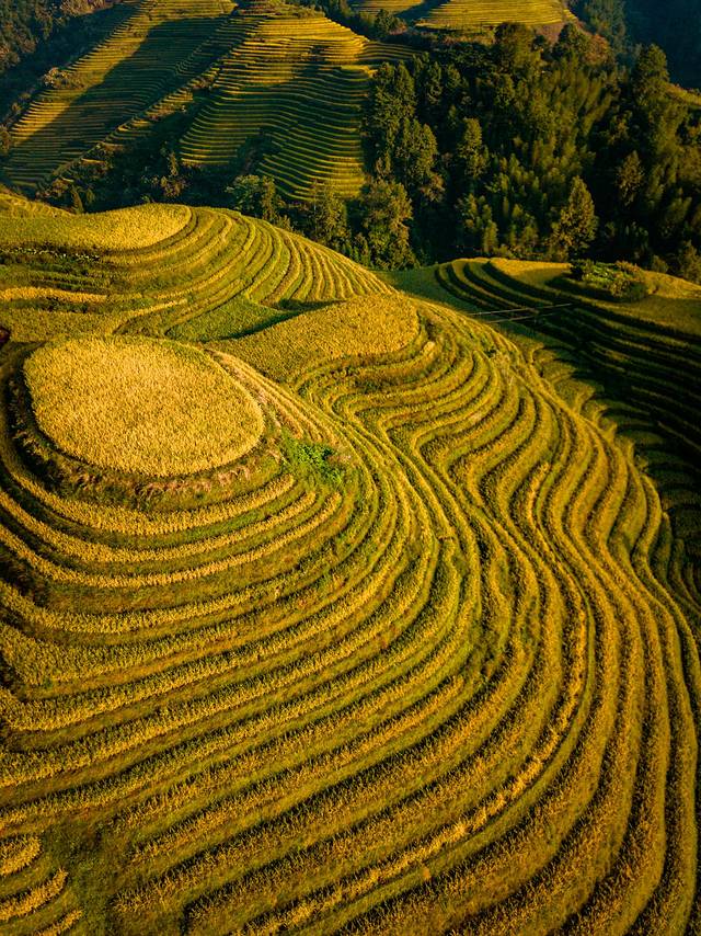 早上醒来太阳已经到了山顶,立马把乔治叫起来航拍,因为我们来不及去观景台了,而民宿旁边就是千层阶梯,航拍的效果更好。有了好天气龙脊梯田的景色真的是绝美,它也是我此行期待超高的景点。
