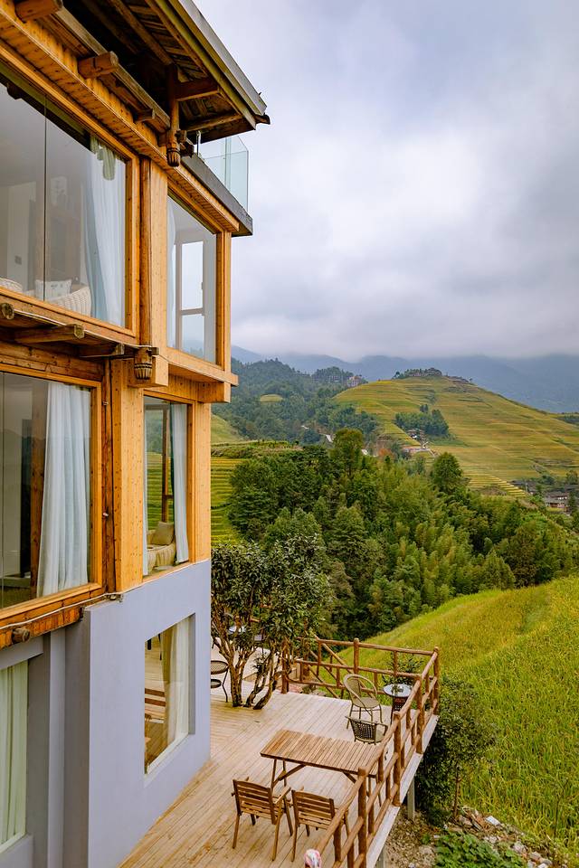 桂林坐大巴来的话,到门口后要坐景区的接驳车。去金坑红瑶梯田要坐景区直通车+缆车(135元)才能到最高观景台金佛顶。但是自驾就可以直接开到山上的民宿,不需要坐缆车了。