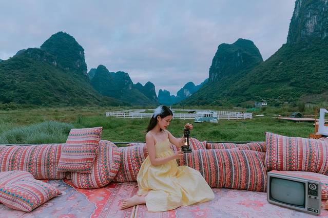 因为国庆期间漓江景区交通管制,自驾车不允许开进来。漓江周围可以骑小电驴,更方便,所以强烈推荐住在景区里面的民宿,这样民宿可以把游客接进去。