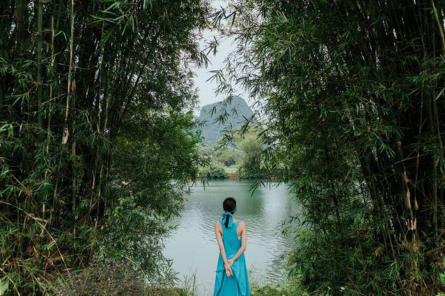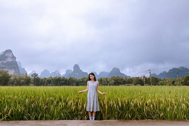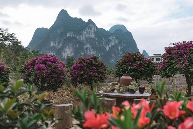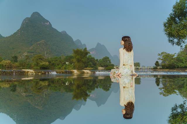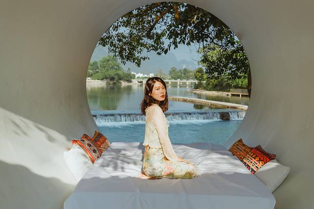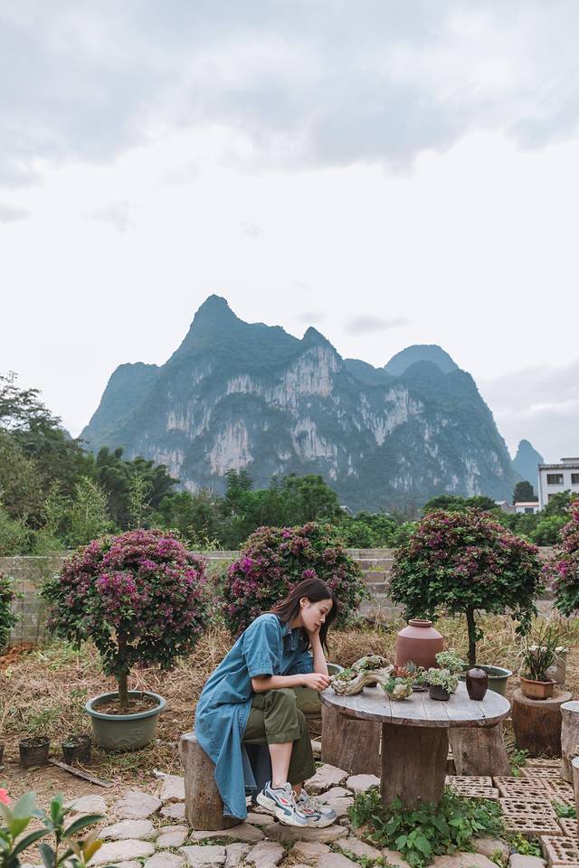 在遇龙河住了两晚,今天要离开阳朔,才记起来我们的民宿有免费的拍照场地,于是吃完早餐匆匆去赶去。看到的时候惊讶,竟然就在河边,那我们昨天为什么要去十里画廊找地方,我们民宿就很宝藏了呀!