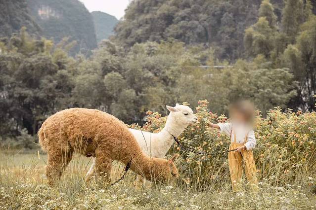 复古挎斗三轮车要看运气,因为能租的店很少,我知道的也就西街有一家,然后这家民宿有2辆。值得一说的是,这家芒果旅宿特别适合亲子游住,因为店里还有2只羊驼,可供小朋友牵到稻田里拍照,还有小朋友拍照租衣服提供。