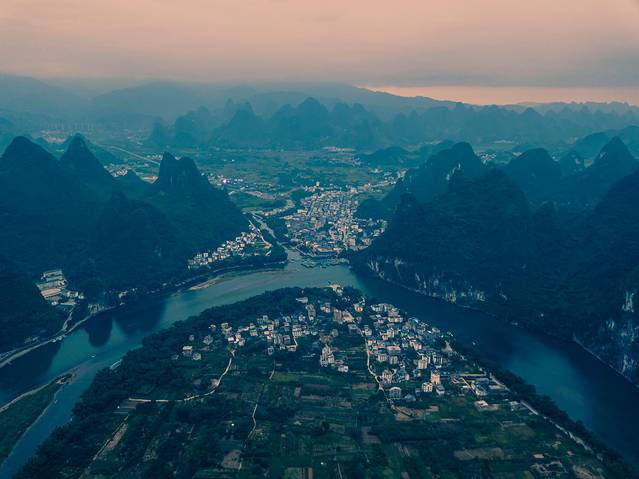 兴坪码头不能算是个景点,但是这里的风光很不错,很合适航拍。不能上老寨山的话,航拍漓江也是一样的。