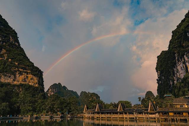 遇龙河和十里画廊在一起,我更推荐住在遇龙河附近,因为离竹筏漂流更近,而遇龙河骑行比十里画廊骑行景色更好。