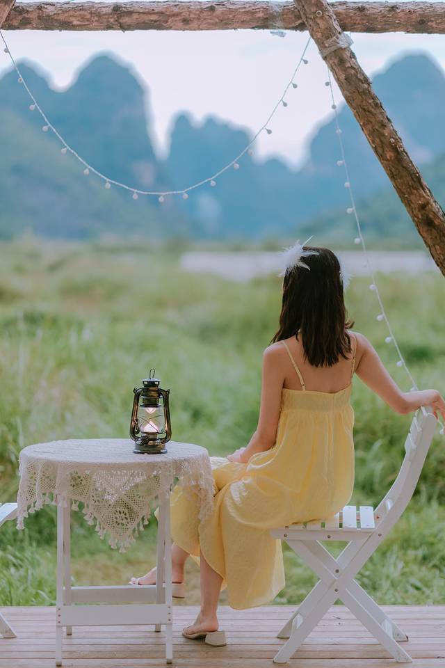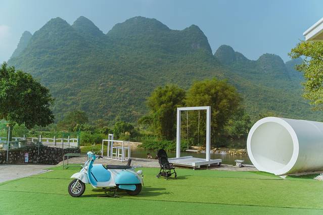 良宿位于遇龙河旧县码头附近,房间环境不错,有浴缸。附近有一条非常美的骑行路线,沿途有稻田、遇龙河、鲜花路。酒店门口也有很多拍照的场景,因为漂流的时候不适合站起来拍照,所以酒店设置了一个竹筏的拍照场景,很好拍。还有秋千、天空之镜、床等场景都很不错。