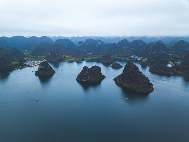 渠洋湖是一个大型的喀斯特高原湖泊水库,湖长15公里,最宽处有1公里,湖面面积有15540亩。