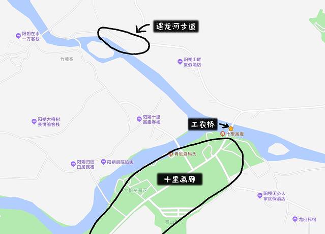 我原以为十里画廊是一条沿着遇龙河,风景优美的骑行栈道,但是我们一直行驶在大马路上,找不到沿河的路线,走错了好多路,足足浪费了2小时。