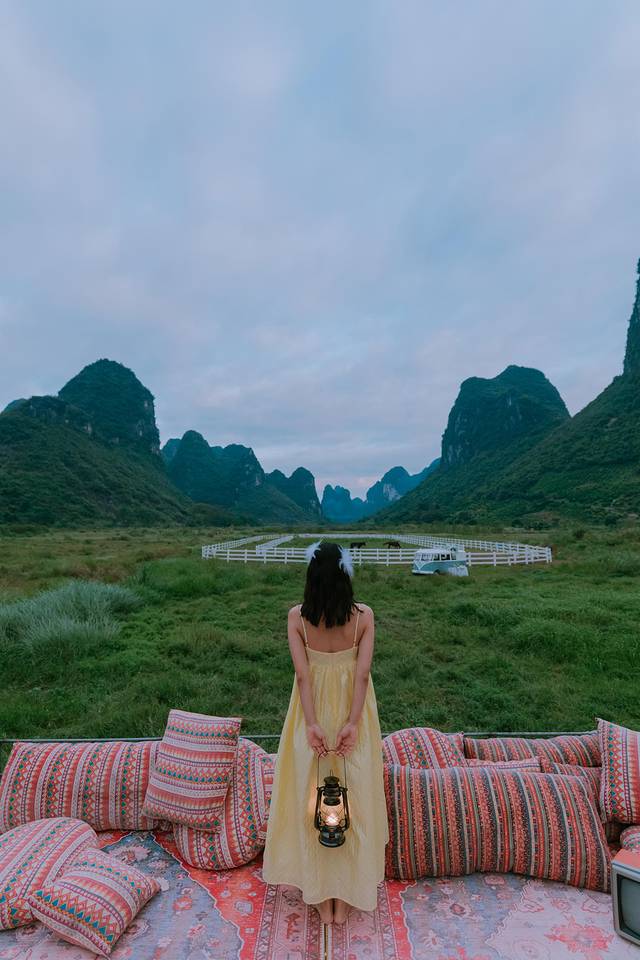 到达阳朔民宿已经快傍晚5点,今天的行程只有一个,那就是去老寨山看落日。