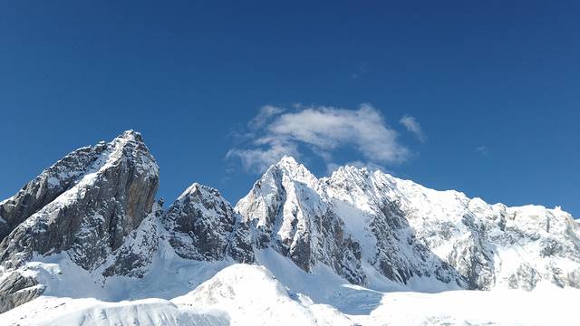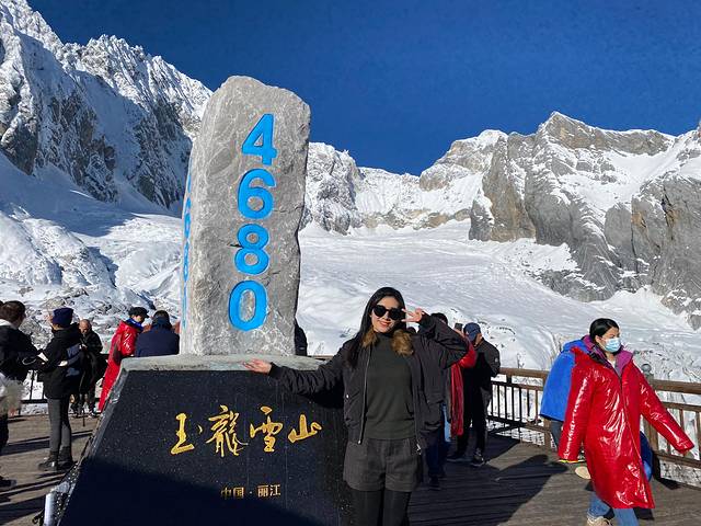 丽江周边的景点真的挺多的,而且都是高品质景点,玉龙雪山距离丽江古镇40分钟车程,有直达的公交车,坐着说是也很舒服,我们本来也想自己去的,结果意志不坚定,还是报了个团,不过人家说的也有道理,报团还管一顿饭呢,腊排骨火锅吃到撑,也是值了。玉龙雪山不管报团还是自己来都是一个步骤的,先去排缆车的队,因为我们报团了,所以到的特别早,没怎么排队就坐上缆车了,我们去的时候是晴天,真的太美了,请看图,但是人眼看着更美,不要赶着雨季去,我爸妈上去什么也没看到。