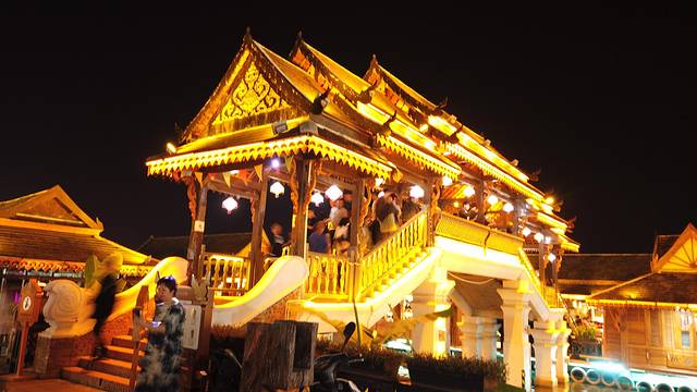 傣秀和篝火晚会犹豫好久,结果发现篝火晚会也有舞台表演,还有自助餐,那就篝火晚会吧,表演很好看,吃的自助就那样吧,说是有当地特色其实并没有,以为能趁着还早把曼听公园和总佛寺看了,但是人家已经围上了,卖我票的小哥哥可能自己也不知道看不了。这边的票找导游呀酒店老板呀问问价,会比官方的便宜