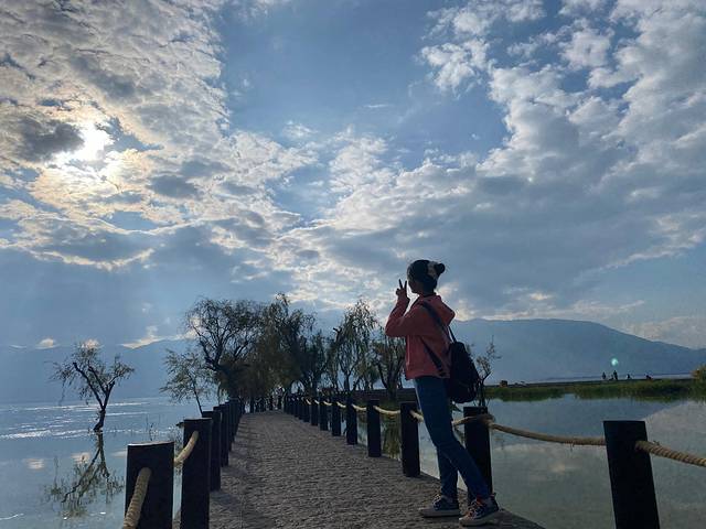 第四天是非常没有计划的一天,前几天起的太早了,多睡了会,本来想着租个小电动环洱海,能逛到哪就是哪了,一出民宿就碰到一个姐姐,270两个人包一辆车,带着玩一圈,最后送到大立火车站,心想价位还可以,民宿老板给的价格是400一天,太贵了,昨天的顺风车师傅是300一天,人家这个车还能给安排个SUV,坐着还舒服,就决定包车出发了。
