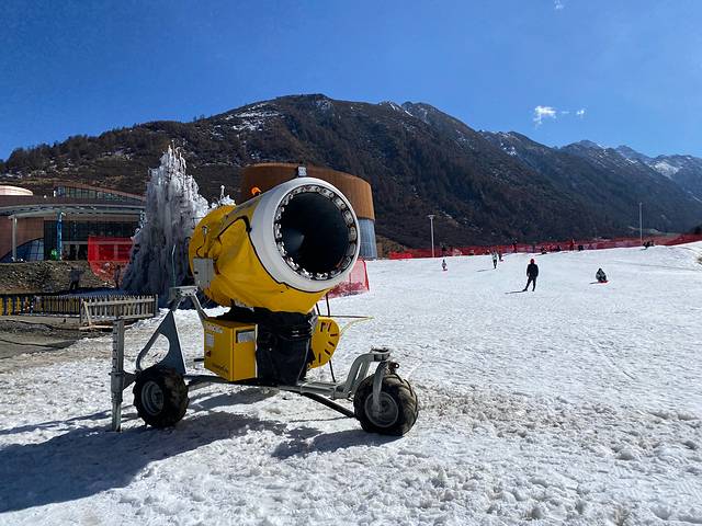 ❤️第三天7点准时从黑水出发(原计划的路线从茂县过来,但是导航从理县过来了)到鹧鸪山滑雪场玩,三个小时的路程!鹧鸪山不需要氧气,因为海拔不高,也因为海拔不高所以是人造雪😂这个就是人造雪的大炮
