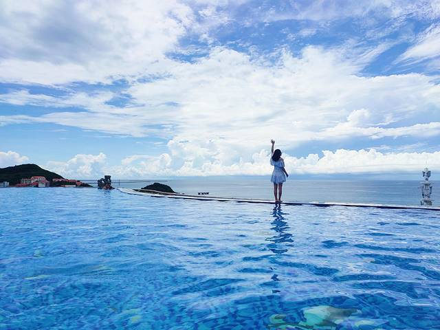 睡到自然醒,泳池我来啦,无边泳池不是游泳的,是拍照的,拍照的~ 独自游泳的我显得很怪异。