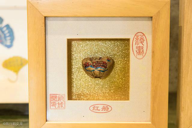 小小的南湖菱居然可以刻画出非常多的图案,用菱画的形式画许多著名地方。还有南湖红船也用菱画的方式所刻画出来。我自己也定制了一枚属于自己的菱画,菱画喜庆的装饰,有种平 安福 的感觉。
