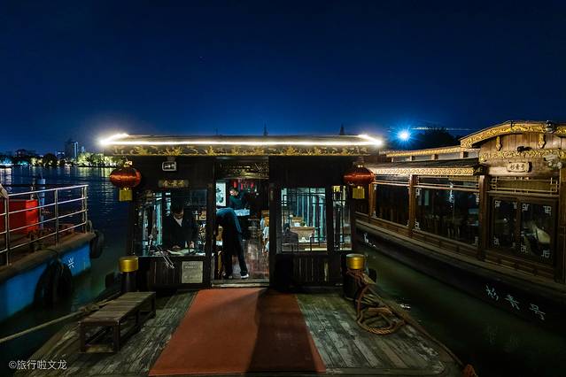 相比于白天游玩 嘉兴 环城河,我更喜欢夜晚在环城河上观赏着两岸的夜景,渐渐暗下去的城市,五彩斑斓灯光亮起,缓缓出现的夜景,总让人产生观赏的兴趣,游船上的游客们感受到了夜景和这座城市的独家记忆。船只的设计达到了豪华的感觉,复古的传统设计在与周边的美景相结合,小时候的记忆涌上心头。