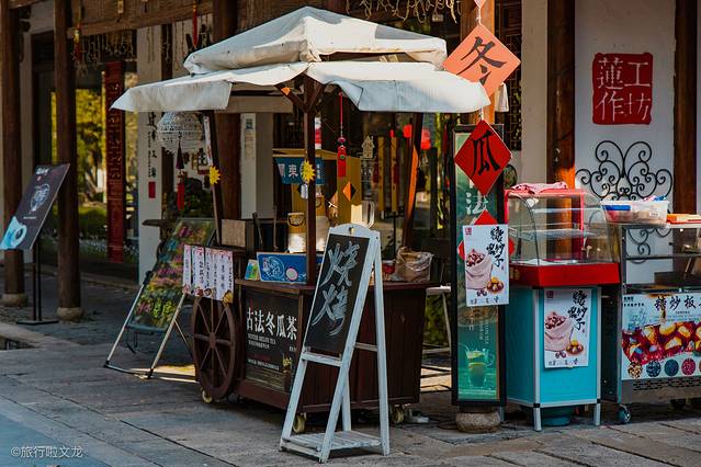 梅花街的南门头可以说是 嘉兴 的网红美食打卡最佳之地,沿着河岸将美景尽收眼底,吃着美食又是另一种享受。南门头美食街的装修风格也是偏向复古。这里全是卖着各种各样的美食,很多地方都是 嘉兴 老字号的美食,每到一处卖美食的地方都有着不同的装修风格和让人开胃的美食,让人有种穿越时空的错觉,在如此有氛围和情调的美食街里,我们感受到了舌尖上的美味。