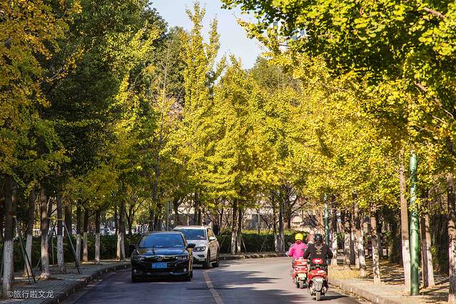 我们可以看到三塔周围的路旁都种满了银杏树,一到秋冬的时间,这些路上便铺满了银杏树的金黄色,地上满是落叶的飘逸,有种美的令人难以想象,树上金黄色的银杏更是在微风中摇曳的跳动着舞姿,唯美的画面令人惊叹,还未从树上落下的银杏叶,大多数便是绿色与黄色相连缀,看一眼便非常难忘,总想将银杏落叶也未落叶的使用姿态记录下来,这就是秋冬所带来的美景和魅力吧,并没有为落叶而感到悲凉,反倒是这些落叶带来的壮丽美景驱散了悲凉,视觉上便是享受眼前美景的熏陶