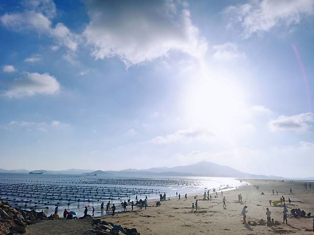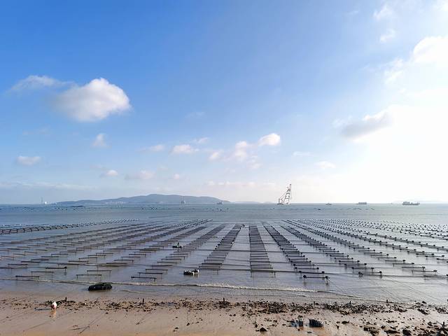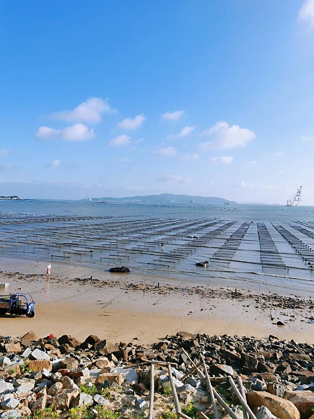 象鼻湾位于平潭南部,还在开发中,在新建一个大型馆厅,不知道是用作什么的,算个网红打卡地,网上搜了有“亚洲第一冲积坝”的美誉。不过去的时候刚好是紫菜种植季,我下到海岸边,和正在干农活的农户们聊下天,感觉蛮新鲜的。