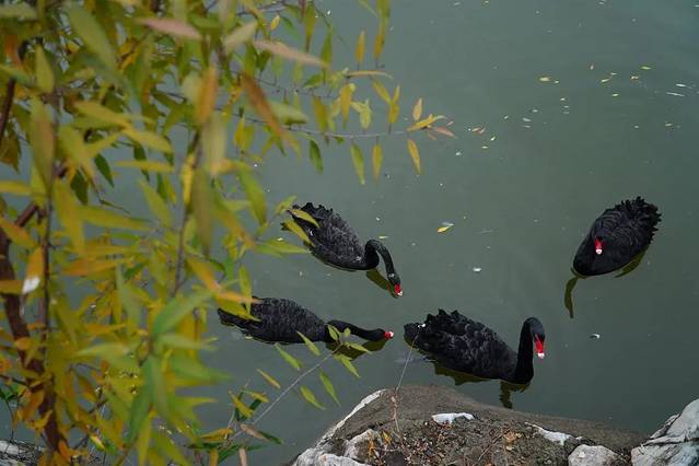虽然冬日万物萧条,但山中光景却也装满了世俗的热闹与可爱。水中嬉戏的天鹅,冬日依旧明亮的黄叶,抬眼撞见的绿意。这些细碎美好的场景,不需要拍照打卡,只用独自看,独自听,开心地发发呆。
