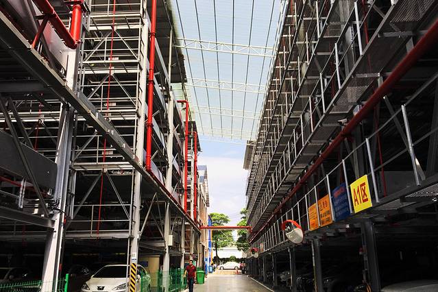 立体停车库规划建设有六层,规划车位约600个,车库配备机械式自动停车设备及人车安全系统,红外线感应入场车辆及人员,如果有车或有人进入危险区域,就会发出蜂鸣的警告声,设备也会自动停止操作,保障现场安全。车库外围规划极具特色的集装箱店铺,各类创意小品、休闲美食应有尽有,是街区里不可或缺的一大胜景。