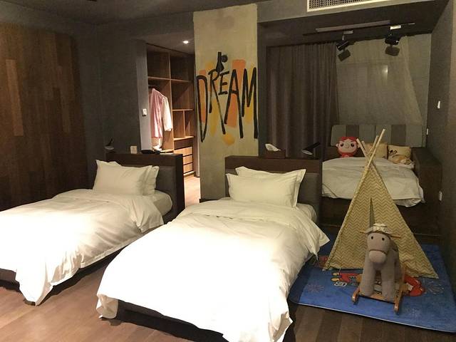 另外一个亲子房,格局差不多,不过是大床。酒店大概有七间亲子房,周末和节假日都非常抢手,所以要来一定要提早预订。