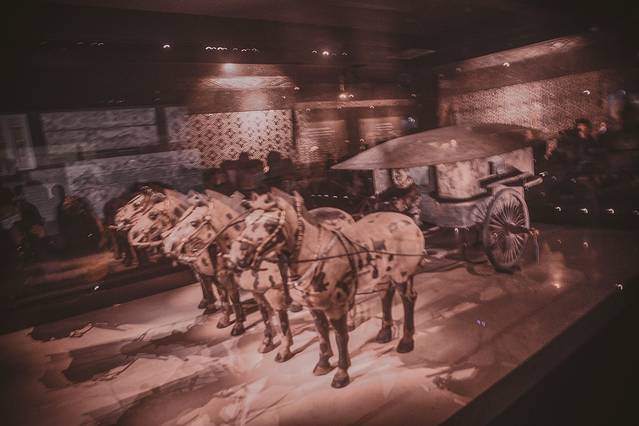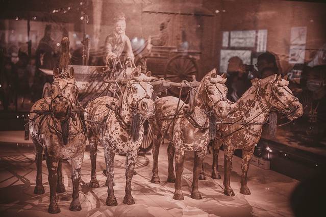 秦始皇陵博物院里正在展示四十年专题,讲述了这四十年间秦始皇陵的发现、文物的收藏和保护等介绍。
