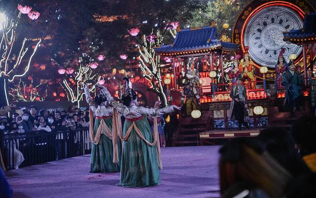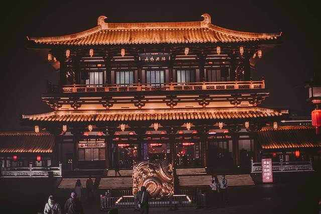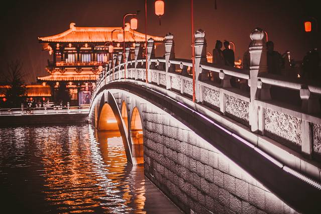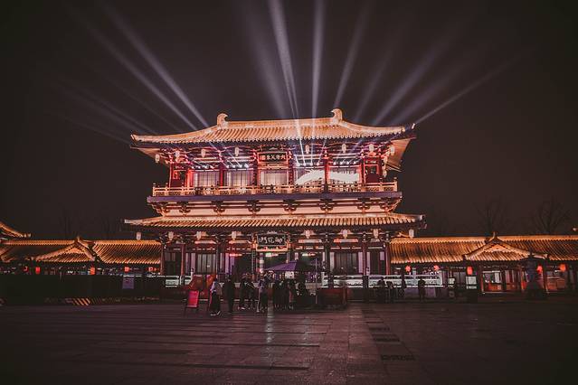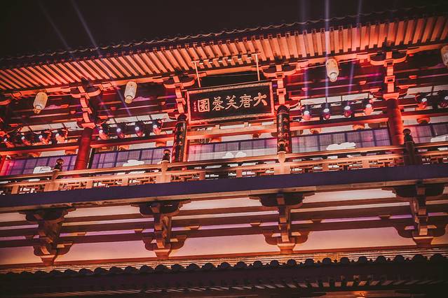 比起早上,更建议晚上前来,白昼之下,这里就是一个普通的公园,但待夕 阳西 沉、华灯初上,这里却犹如灯会一般,不仅亭台楼阁华彩夺目,更有水幕激光秀、大型舞剧《梦回大唐》等精彩演出。