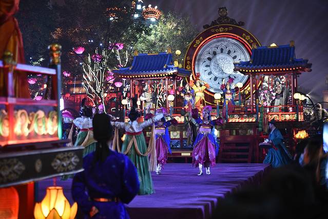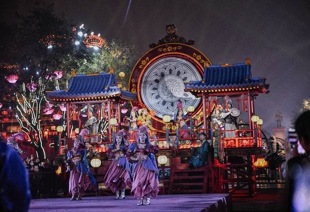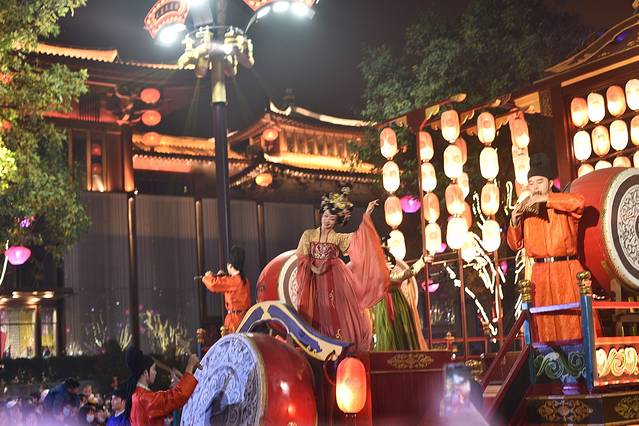 歌舞表演精彩绝伦,不倒翁、花车斗舞、 敦煌 飞 天等 舞台前永都人头攒动,把舞台里三层外三层地紧紧包围,如果是周末或节假日,那更是一番水泄不通的景象。
