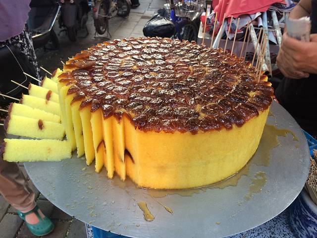 走到头左转是大皮院,再走到头再左转是北广济街,中间和大皮院平行的是西羊市,在北广济街西边是大学习巷,基本上所有的好吃的都集中在这五条街道上了,玫瑰镜糕。5元一条,玫瑰酱就是味道太甜了,感觉还行
