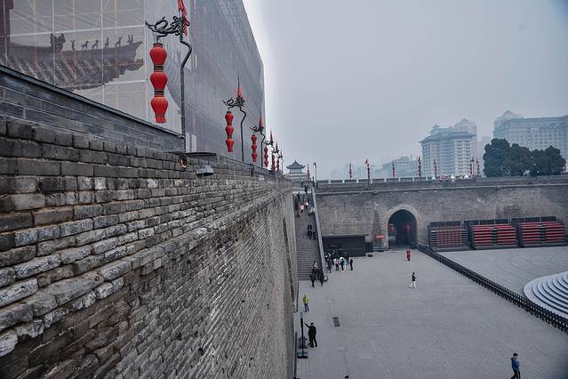 古城墙在隋朝时间兴建,经历了唐宋明清和现代期间的改建加固,最终成为今天的模样,现在我们看到的古长城,主要是明代建筑,一共18个城门,其中最重要的城门有四座: 长乐 门(东门), 永宁 门(南门),安定门(西门), 安远 门(北门)。