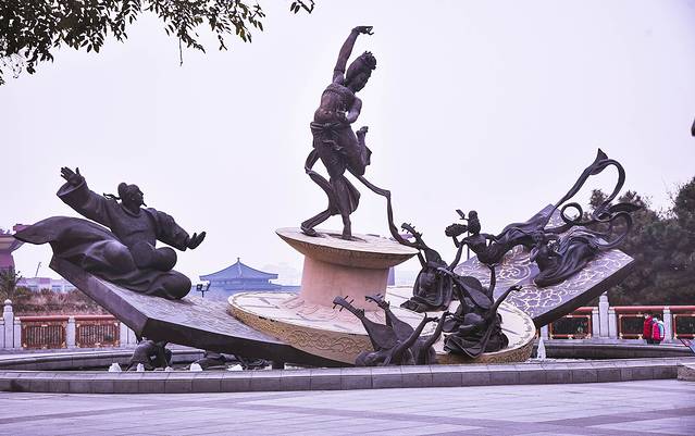 大雁塔又名大慈恩寺塔,位于大慈恩寺内原称慈恩寺西院浮屠(浮屠即塔的意思),唐代玄奘为藏经典而修建,慈恩寺前树立的雕像就是唐代玄奘。