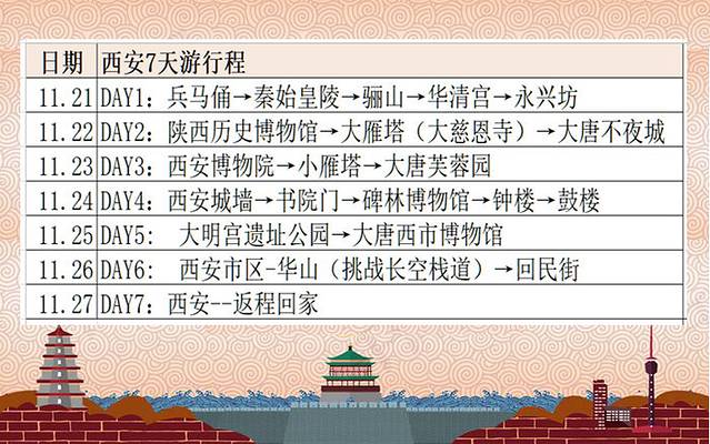 西安 7日游推荐路线: