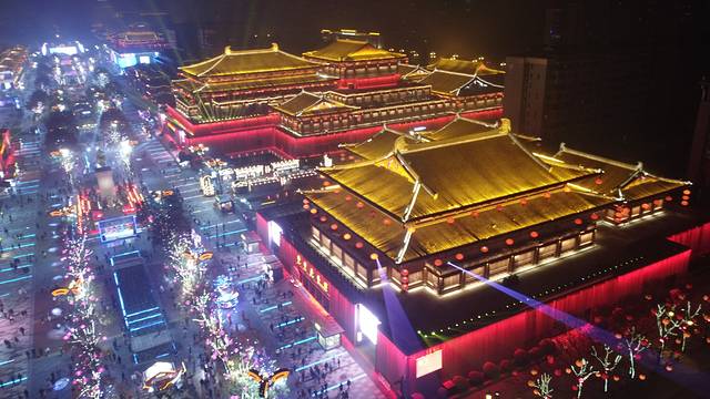 既然是不夜城,自然要等每当日落后,才是最精彩的时刻,灯火辉煌,大唐不夜城便披上最耀眼的外衣,色彩鲜艳的光束将 西安 的夜空照得如同白昼。