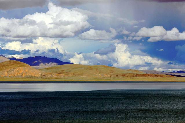 今天的天公不作美,早上的晴天被下午的乌云密布给替代了,天色会有点压抑,一路上的乌云让人心情有点沉闷,不过我们依旧沿着河水一路向着更高处出发,离白马雪山的路上越来越近了,这条忘记叫什么名字的河流也更加宽阔。