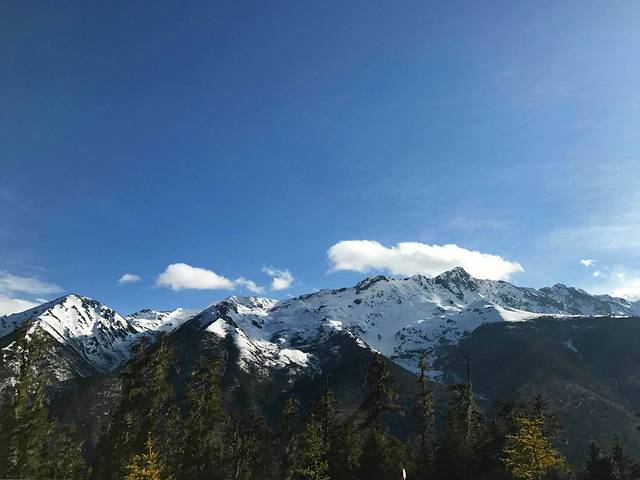 不一会儿我们来到了一个观景台来到了这里我们能看见不远处的监测站,雪山在日照的映衬下显得更加光彩夺目,本该翠绿的原始森林在这里显得如此的庄严似乎神秘而不可靠近,却又有几分像世外仙境的一般。