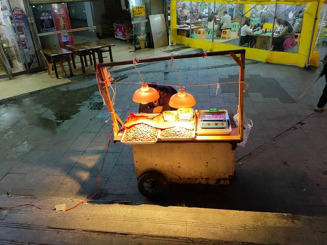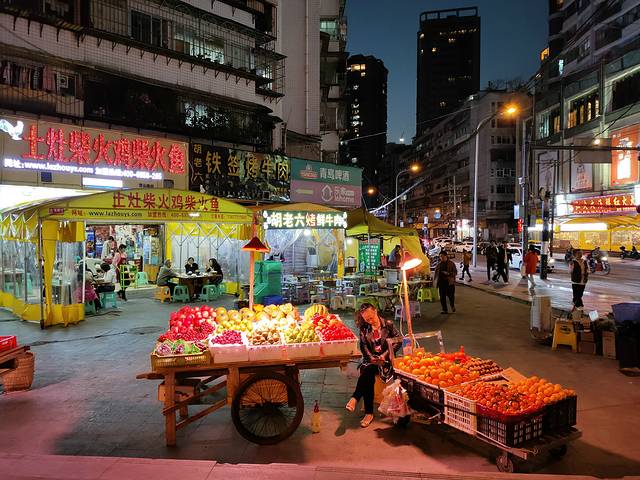 有一些卖水果的摊位,夜晚的时候摊主会打开昏暗的小灯,喜欢拍人文的小伙伴应该会容易出片