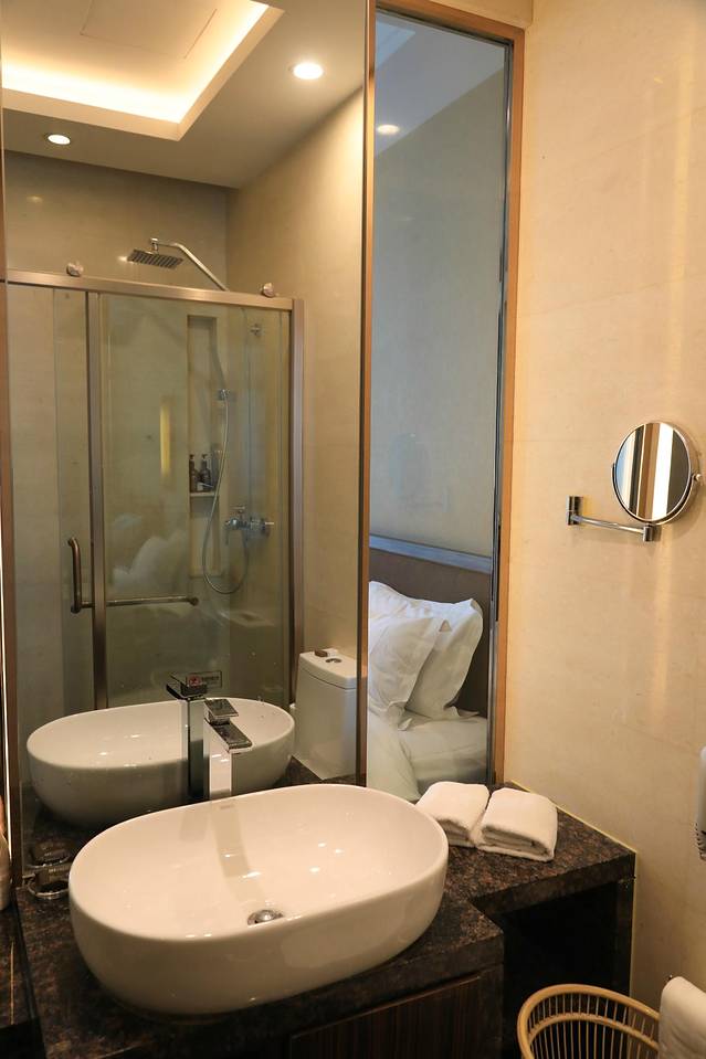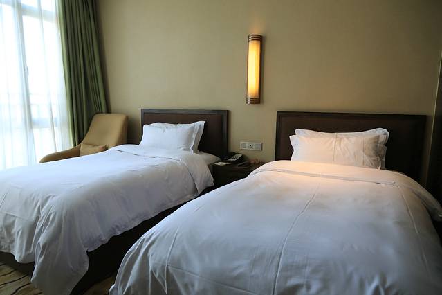房间还算宽敞,干净整洁布局合理,房间内的设施还算完备,隔音也不错,这对于睡眠不好的人来说还是不错的。另外,酒店还配有泳池、健身房、桑拿房之类,喜欢的朋友也可以去体验下。