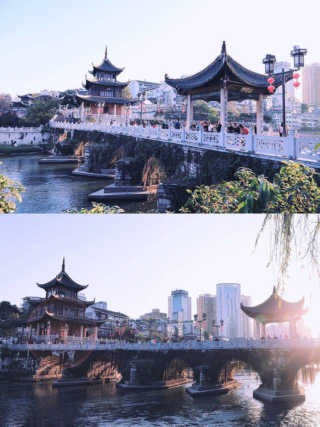 另外,因为这里有很多白鹭栖息,所以有很多摄影的老法师,会在岸边的步道架好各种器材,随时抓拍白鹭钻桥洞或者夕阳下的金光穿洞,这里还要说的就是,夕阳时分的甲秀楼,会沐浴在斜阳的照耀之中,寻找不同的角度,会有惊喜的发现呦,当然甲秀楼的夜景也很漂亮,从远处望去,灯火璀璨,也值得一看呀