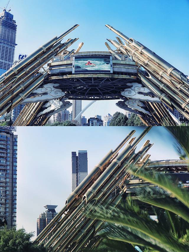 每一座城市都会有一张名片也或是这座城市的地标建筑,筑城广场应该算是贵阳的主要名片之一,它位于贵阳老城区中心,与贵阳母亲河的南明河相依偎。在筑城广场上,远远就能看到一座巨大的标志建筑,这就是由8个巨大的芦笙组成“筑韵”雕塑,它代表了贵阳的竹文化,也很好的诠释了贵阳历史内涵和贵阳人的精神风貌