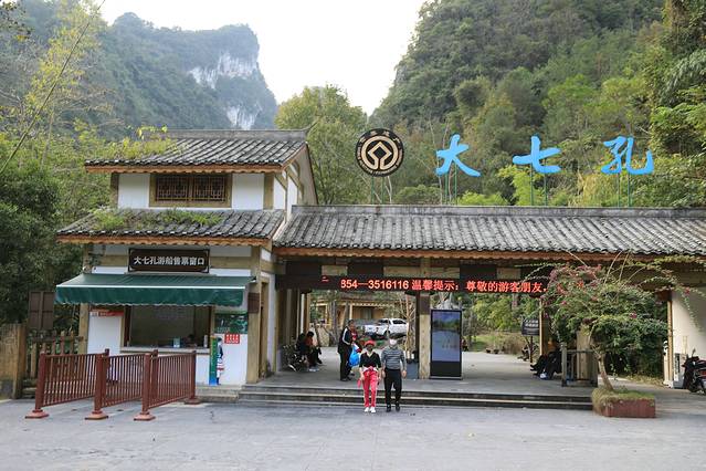 在荔波县汽车站有很多到大小七孔的小巴。县城到大小七孔大概需要40分钟的样子,从小七孔到大七孔有观光车可乘。