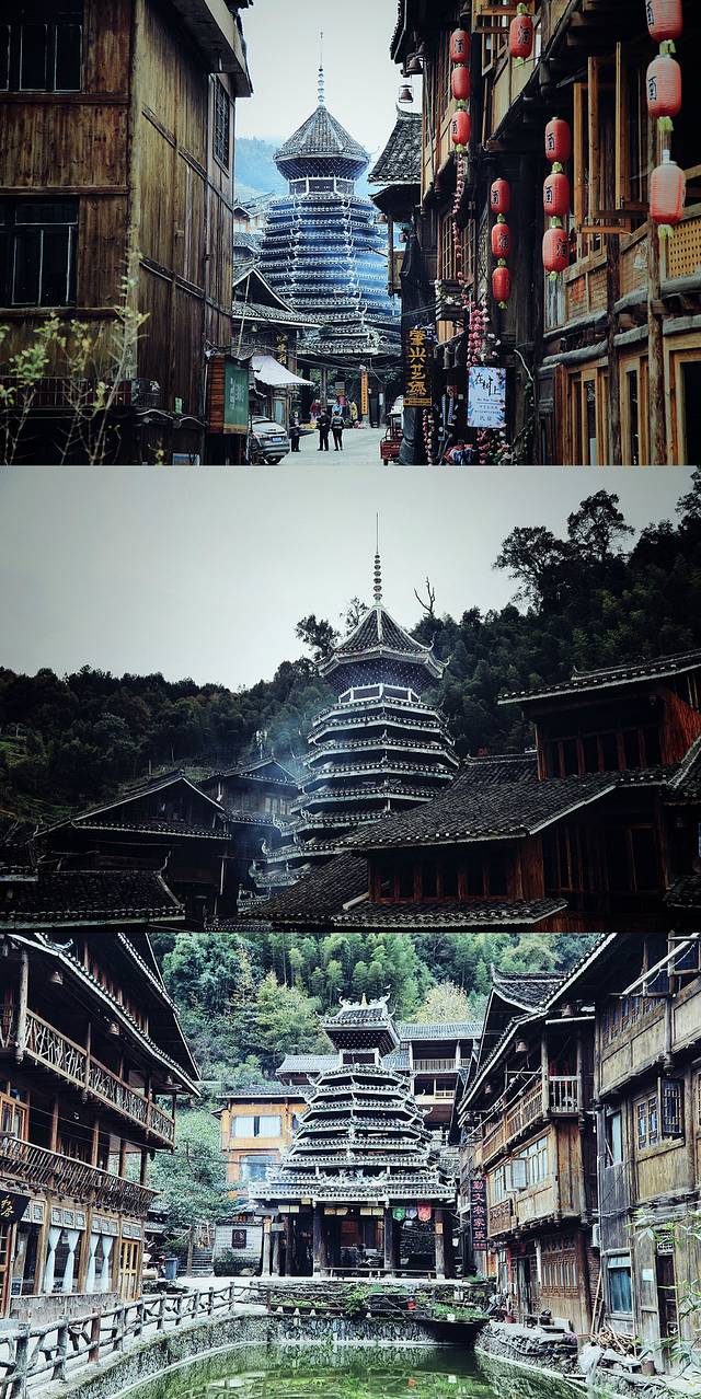 这里就要提到侗寨的标志—鼓楼,肇兴侗寨的鼓楼群最为著名,它的鼓楼在全国侗寨中绝无仅有,因此也被誉为"鼓楼文化艺术之乡",寨中的五团共建有五座鼓楼、五座花桥、五座戏台,与此同时这五座鼓楼的外观、高低、大小风格迥异,各自有各自的特点
