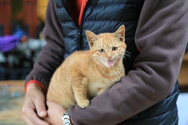 店老板为人热情,喜欢吹萨克斯,晚上的时候还会给客人们吹上几曲,养了一只几个月的小猫,可能被老板宠溺坏了,总是喵喵的叫着让人抱,抱起来立刻和人亲昵起来,相当的可爱