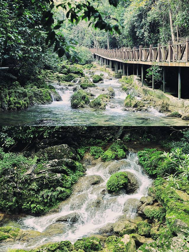 景区的区域还是很大的,所以建议可以乘坐景区内的观光车,这样可以节省一些体力和时间,我是从西门进入的,一路之上都被小七孔的自然景观所震撼,几乎每一处都是拍摄的好机位,即使不用滤镜都会觉得美的醉心。