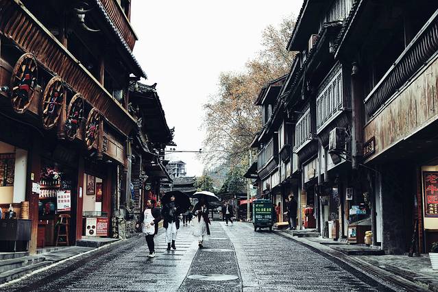 不得不说,从北京出发前我还特意查了下天气预报,但是没想到一切还是来得那样突然,气温骤降不说,天空这绵绵细雨到底是几个意思?我原本期盼的事蓝天白云的西江苗寨啊,但是这个雨淅淅沥沥的下了好久了,完全没有停的意思,也没有变大的趋势,好吧,既然如此,那就做个雨中人吧