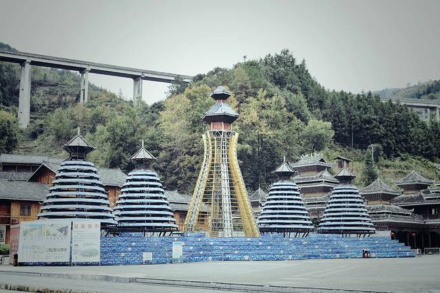 2018年春节晚会的四个分会场之一就设在肇兴侗寨,在侗寨景区大门位置的五座仿鼓楼建筑,那就是会场所在,当然肇兴侗寨还被评为过“中国最美的六大乡村古镇”之一及“全球最具诱惑力的33个旅游目的地”之一,这也足见其侗寨的魅力