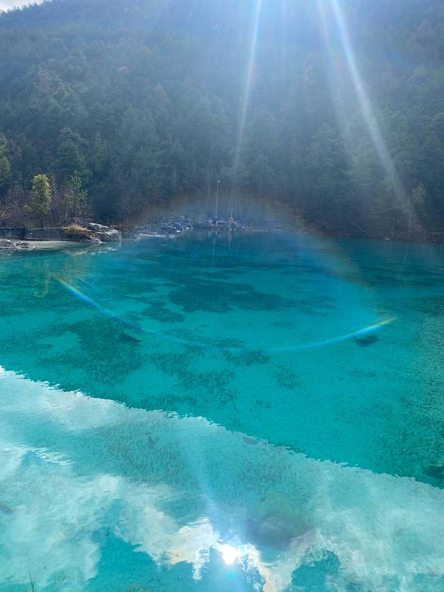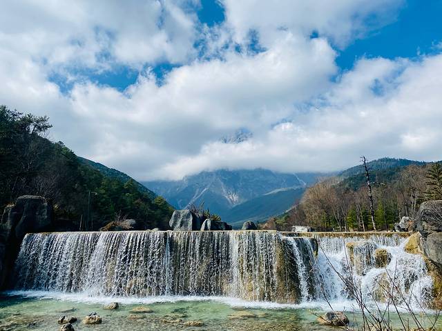 雪山下得蓝月谷路上风景图,很漂亮,水很清,天很蓝。