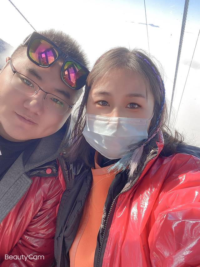 坐缆车下得时候在云层里自拍。