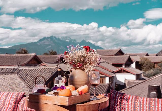 第二天上午,我们直奔丽江,打卡丽江得网红酒店,白马奢客栈上得景色。