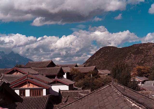在房屋上拍得古城特写。
