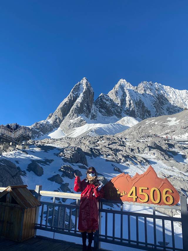 第三天,直接去玉龙雪山,需要提前一天订票,我们在携程上定的一对一服务私团,开车到停车场,然后坐巴士直达缆车入口,坐缆车到第一站4506,下来自己走3公里,需备氧气瓶,棉衣和手套可有可无,个人感觉不冷。